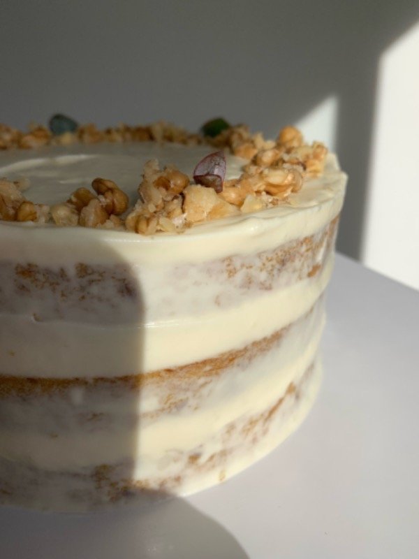 Torta húmeda y especiada de zanahoria rellena de un delicioso frosting de queso crema